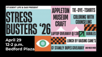 STRESSBUSTERS is almost here! Join us Wednesday, April 30, 12-2 p.m., in Bedford Plaza as we take a break from stress. Lunch from Rasing Cane’s will be available. One lucky … Read more