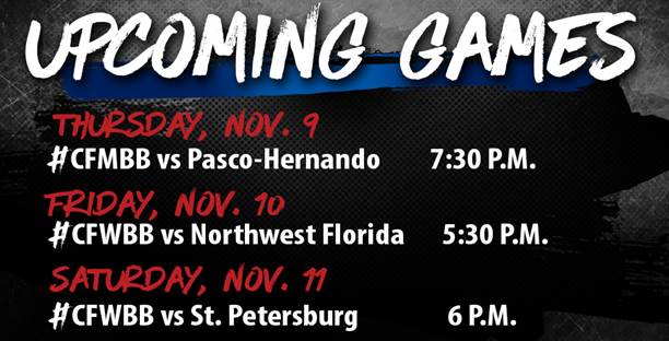 Catch the CF Men’s and Women’s Basketball teams in action. Check out their schedule below: Thursday, Nov. 9 at 7:30 p.m. CFMBB vs Pasco-Hernando Friday, Nov. 10 at 5:30 p.m. … Read more