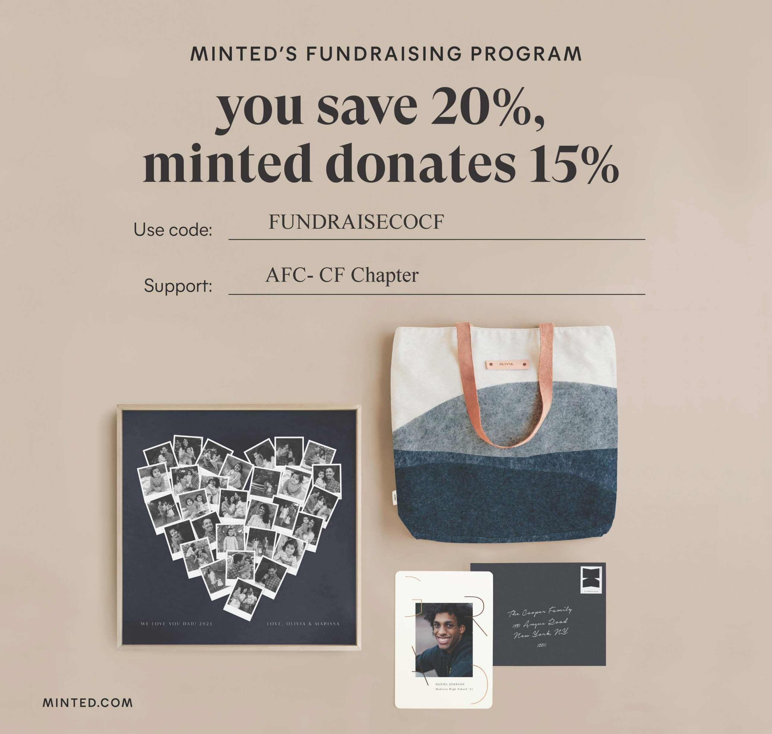AFC has partnered with minted.com! Shop online for luxe gifts designed by independent artists and use the promo code FUNDRAISECOCF. You’ll get 20% off your order and 15% of your … Read more