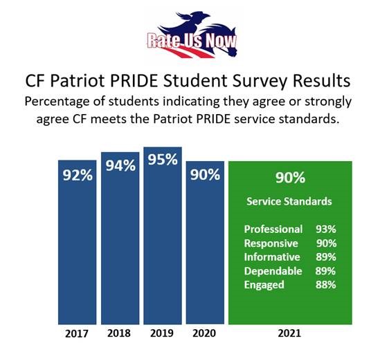 Over the past five years, CF students have completed more than 7,000 Rate-Us-Now surveys. In 2021, for the fifth consecutive year, students rated their satisfaction level with college services at … Read more