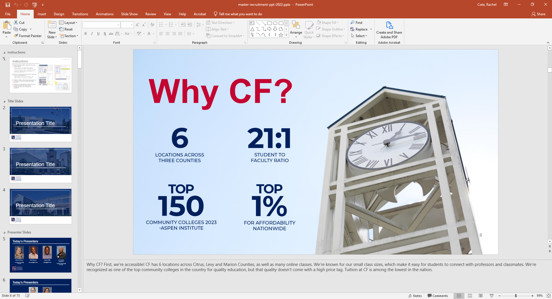 A collegewide recruitment PowerPoint is now available on the Marketing Inside.CF.edu department page. The PowerPoint slide deck includes basic information about admissions, financial aid, program areas, student life and more, … Read more