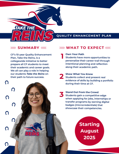 The site visit for CF’s 10-year accreditation reaffirmation is next week! As part of that process, a team of SACSCOC representatives will visit Ocala Campus, Jack Wilkinson Levy Campus and … Read more