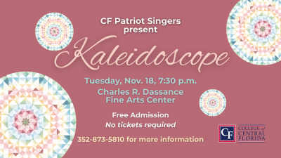 The College of Central Florida Patriot Singers will present a free fall concert on Tuesday, Nov. 18, at 7:30 p.m. in the Charles R. Dassance Fine Arts Center.