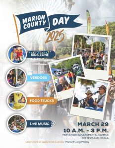 CF will have a table at Marion County Day, Saturday, March 29, 10 a.m.-3 p.m., at the McPherson Governmental Campus in Ocala. Want to help represent CF and share information about our programs and services with the community? Sign up for a shift by emailing Rachel Cote, coter@cf.edu: