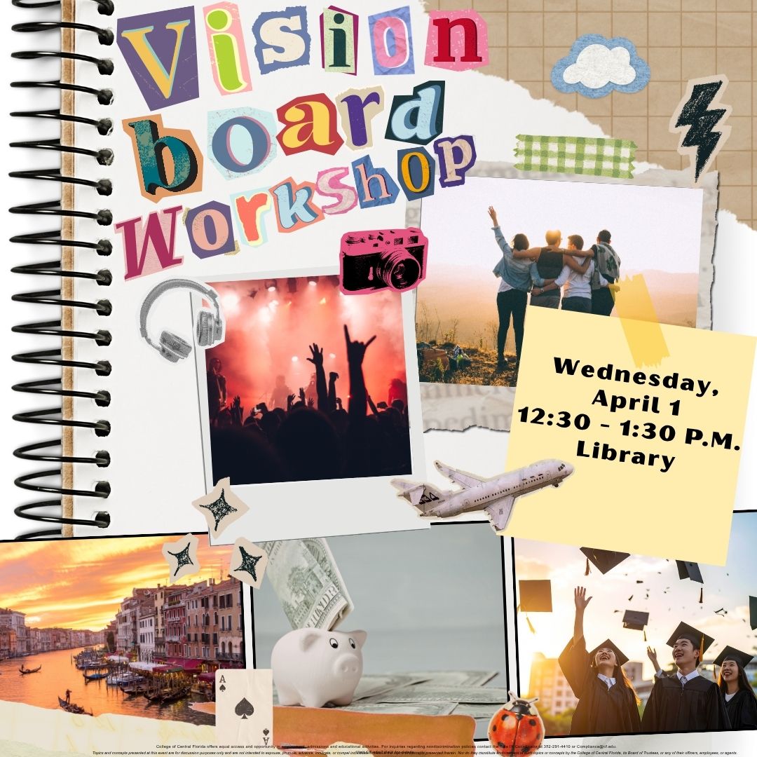 Join us, Monday, April 1, 12:30-1:30 p.m. to put your vision into action! All supplies provided - just bring your creativity! FREE hot coffee//tea OR a scoop of ice cream for the first 100 students. Please remember events sponsored by the Student Activities Board are for enrolled students. If you are not a currently enrolled ... Read more