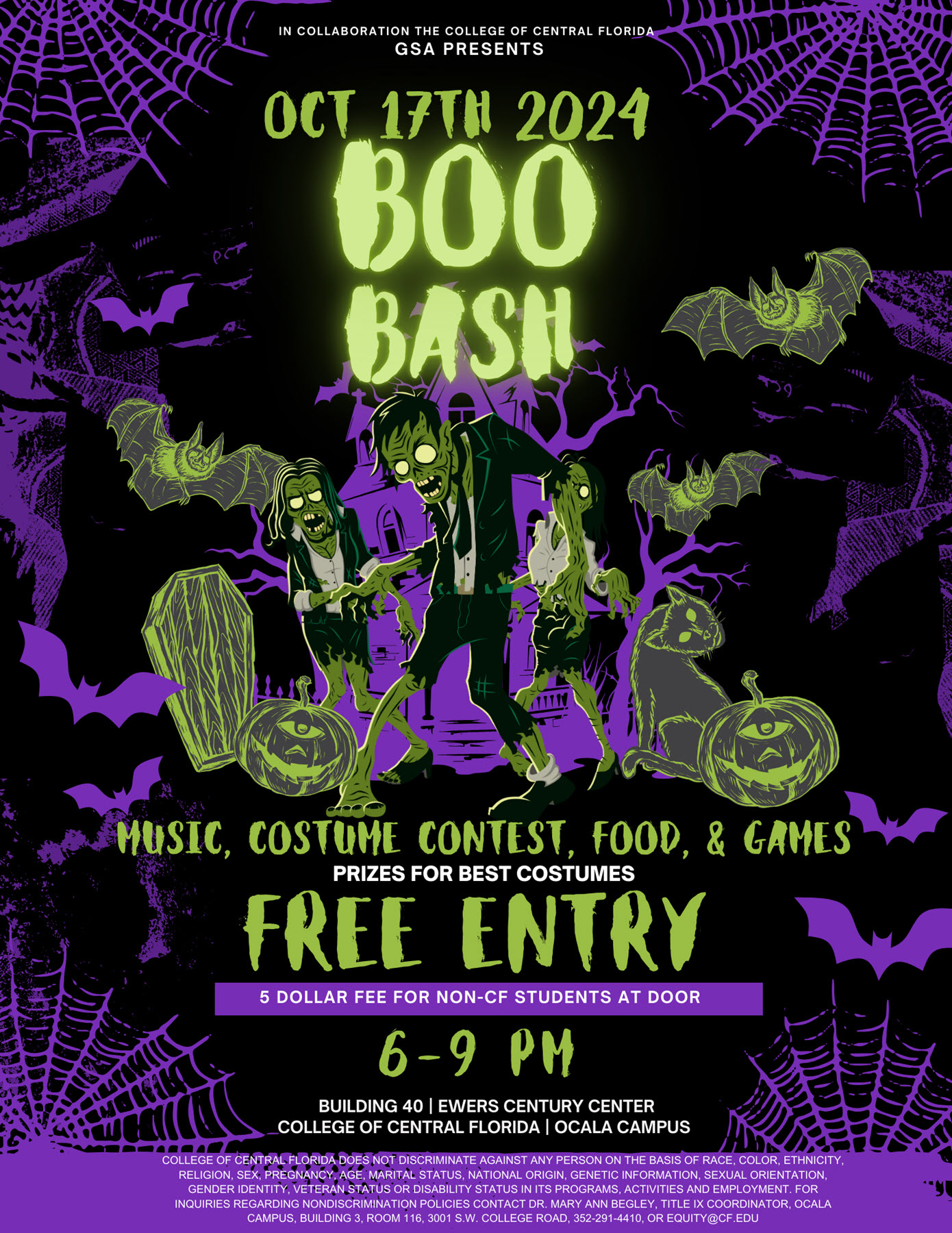 The Ewers Century Center, Klein Conference CenterPlease encourage your students to attend the third Annual GSA Boo Bash Thursday, Oct. 17, 6-9 p.m. at the Klein Center. Prizes will be awarded for cutest, funniest, scariest, best DIY, best group, and best overall costumes. Snacks and beverages will be served. Students: free admission with Student ID number; other guests, $5.00 at the ... Read more