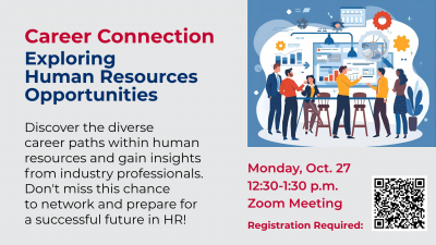 Join us for Career Connection: Exploring Human Resource Opportunities on Oct. 27, 12:30-1:30 p.m. via Zoom. Discover the diverse career paths within human resources and gain insights from industry professionals. ... Read more
