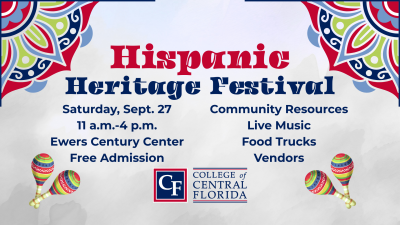The College of Central Florida will host a Hispanic Heritage Festival on Saturday, Sept. 27, from 11 a.m.-4 p.m. At this free family event, visitors can get assistance with applying to the college with no application fees, and also can access community resources and enjoy music, food trucks and vendors. “We are excited to connect ... Read more