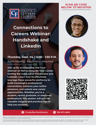 Encourage your students to join us for an engaging one-hour webinar Thursday, Sept. 4, 12:30-1:30 p.m., on Connections to Careers: Getting the most out of Handshake and LinkedIn. They will … Read more