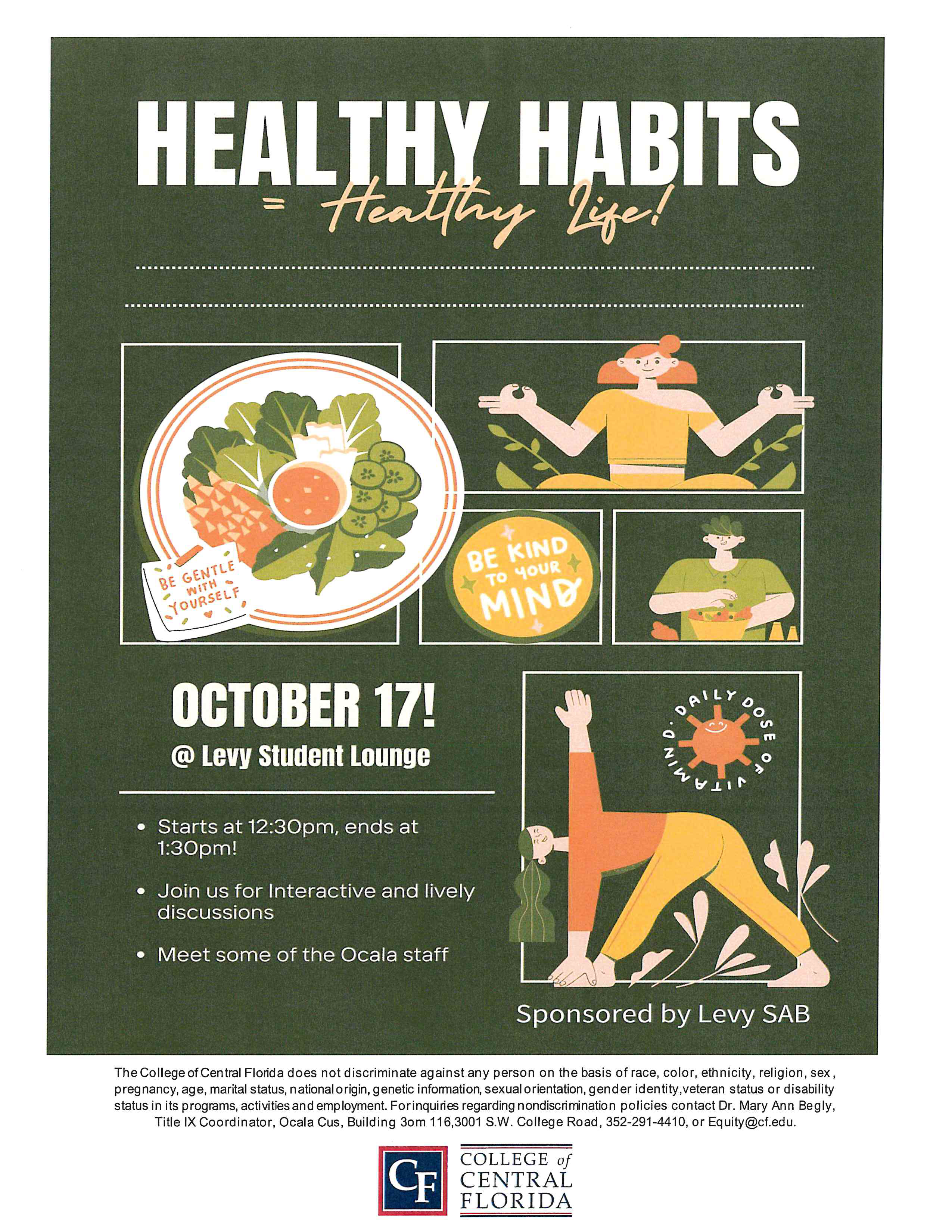 Faculty and Staff please encourage your students to attend Healthy Habits Equals Health Life. The Levy SAB is hosting this event Tuesday, Oct. 17 at 12:30 p.m. in the Levy … Read more