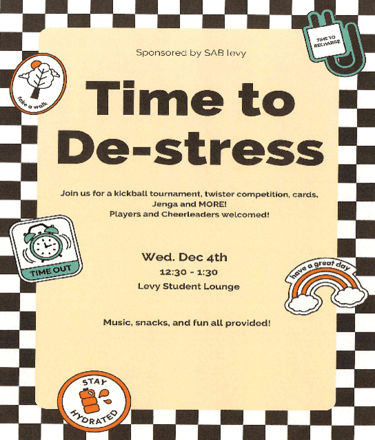 Levy faculty, encourage your students to join Levy SAB for the launch of our updated Student Activities Room! There will be hot apple cider and coffee. Side quests will include … Read more