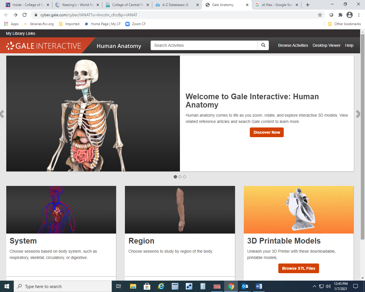 The CF Library has a new electronic resource for students of anatomy and related subjects. Gale Interactive: Human Anatomy is now available on the library’s databases A-Z list. Gale Anatomy … Read more