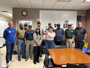 Photo: Cyndie Martinez Mercado receives “Whale Done!” Award while being congratulated by her coworkers.
